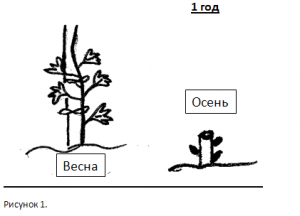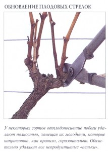 В I г. жизни саженцу даем расти свободно. По мере роста подвязываем к колышку вертикально. В авг., при замедлении роста побега, прищипываем у него верхушку ( чеканка). Это будет способствовать вызреванию лозы. О замедлении роста подскажет выпрямленная вершина побега. Перед укрытием обрезаем побег на 2-3 почки. Обрезку проводим в осеннее время, так как в весеннее время тяжело избежать “плача винограда”. На зиму укрываем и уже этой в осеннее время устанавливаем шпалеры.